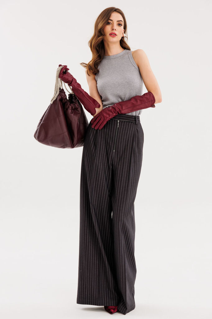 Состав: Вискоза-32%; ПЭ-65%; ПУ-3%; Сезон: Весна Рост: 170 Страна бренда: Беларусь Состав: Вискоза-32%; ПЭ-65%; ПУ-3%; Брюки-палаццо выполнены из костюмной ткани. Брюки на притачном поясе, длино... Показать описанией в пол, по бокам лампасы, складки и боковые карманы. Застежка спереди на молнию. Передняя и задняя часть брюк заутюжены на кант. Длина брюк с поясом - 114 см. Гарантийный срок не установлен ГОСТ 25294 - 2003 РОСТ 170 Размерный ряд 42 44 46 48 50 52 Длина сбоку с поясом 114 114 114 115,5 115,5 115,5 Объем по талии 73 77 81 85 89 93 Объем по бедрам 102 106 110 114 118 122 Ширина пояса 3,5 3,5 3,5 3,5 3,5 3,5