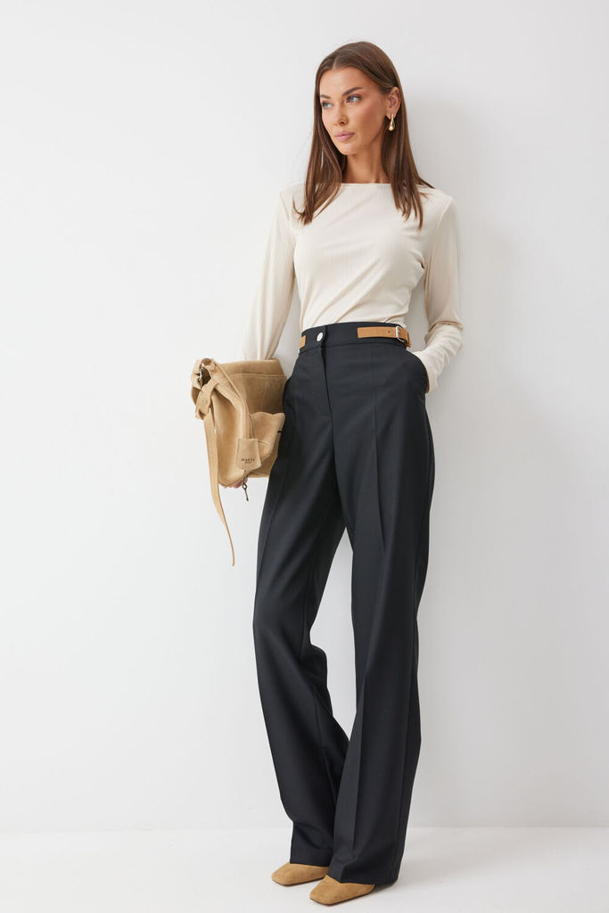 Состав: Вискоза-27%; ПЭ-70%; Спандекс-3%; Сезон: Осень-Зима Рост: 170 Страна бренда: Беларусь Состав: Вискоза-27%; ПЭ-70%; Спандекс-3%; Брюки прямого силуэта из костюмной ткани. По верху брюк притачно... Показать описанией пояс с застежкой на петлю и пуговицу, по верху пояса ,на боковых швах , расположены декоративные пряжки. На передних половинках обработаны карманы и застежка молния в среднем шве. На задних половинках вытачки. По поясу задних половинок брюк резинка. Обращаем ваше внимание, что фурнитура может незначительно отличаться от фото Длина брюк 111см +5см пояс