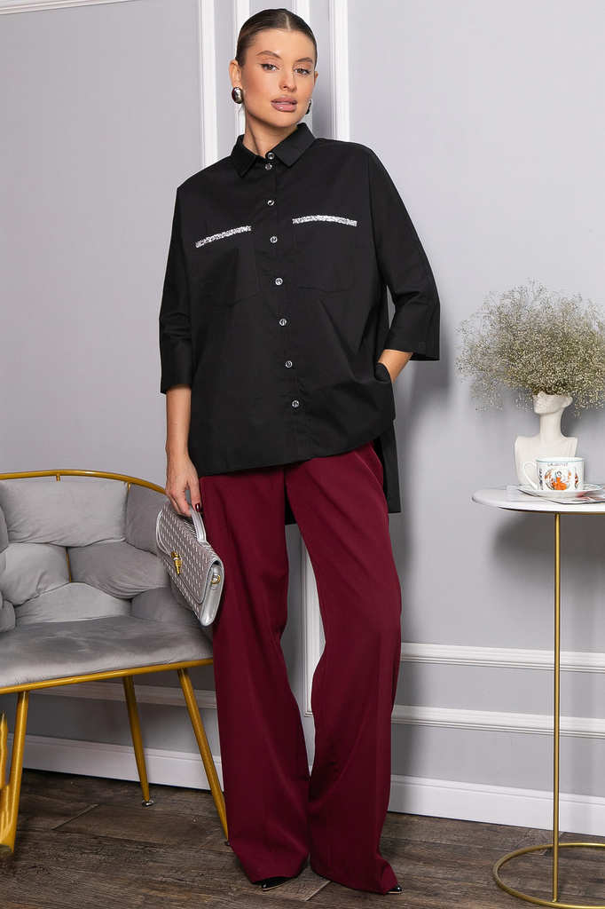 Состав: Хлопок-95%; Эластан-5%; Сезон: Осень-Зима Рост: 170 Страна бренда: Россия Состав: Хлопок-95%; Эластан-5%; Состав : 95% хлопок, 5% эластан Материал : хлопок Цвет : черный Принт : отсутствует Си... Показать описаниелуэт : свободный Карманы : отсутствуют Подкладка : отсутствует Вид застежки : пуговицы Декоративные элементы : блестки на клеевой ленте Длина : 44-71 см, 46-72 см, 48-73 см, 50-74 см, 52-75 см, 54-76 см Длина по переду (ассиметричный крой) : 44-65 см, 46-66 см, 48-68 см, 50-69 см, 52-71 см, 54-72 см Отснята с брюками Б14104-34М Стильная рубашка — базовая основа гардероба! Подходит как для офиса, так и для учёбы. Рукава длиной 3/4, два накладных кармана, длина рубашки сзади длиннее, чем спереди. Оверсайз-модель придает стильный и современный вид, при этом прекрасно скрывая все недостатки фигуры. Это великолепный выбор для тех, кто предпочитает оригинальность и стиль в своем аутфите. Прекрасно сочетается с различными низами и аксессуарами. Внимание! Рекомендуем ориентироваться на размерную сетку и выбирать свой привычный размер, согласно размерной таблице. *Допуск отклонения длины при массовом производстве 1-3 см является нормой. Уход за изделием: Ручная стирка или стирка в машине при температуре до 30 °C, деликатный режим. Не использовать отбеливатели. Разрешена глажка при температуре до 110 °C. При глажке использовать специальную насадку на подошве утюга, гладить с паром. Не замачивать и не выжимать. Стирать изделие наизнанку, отдельно от других вещей.