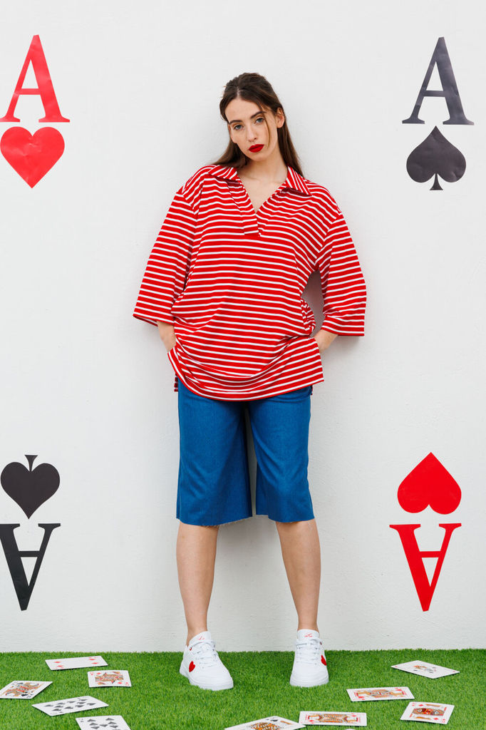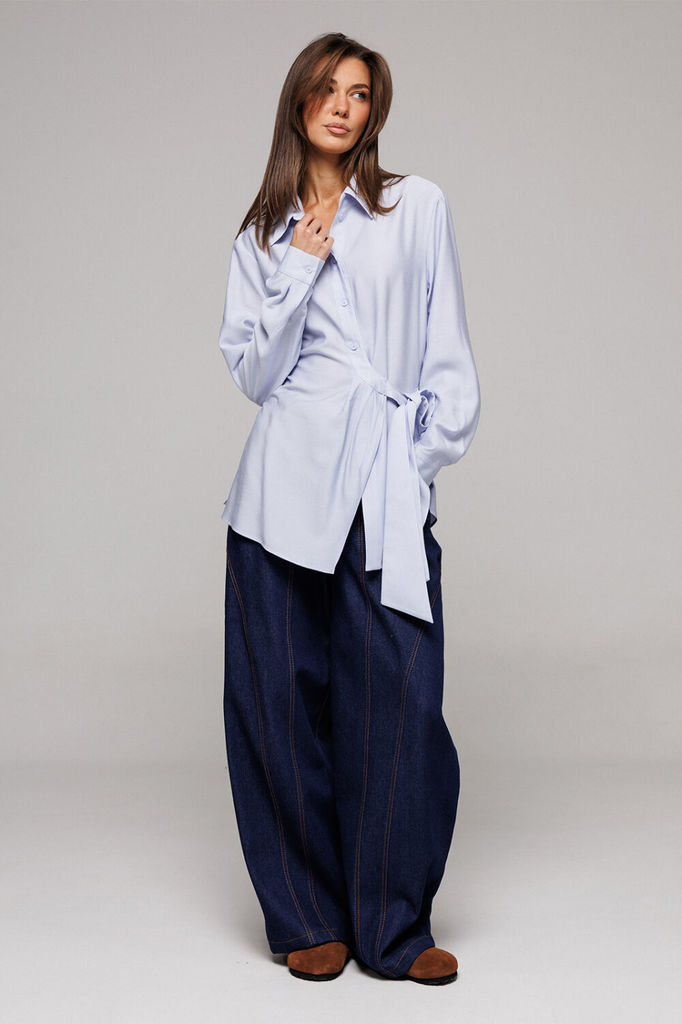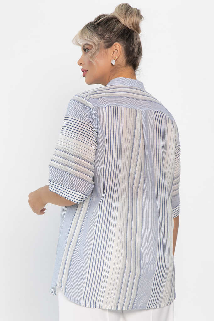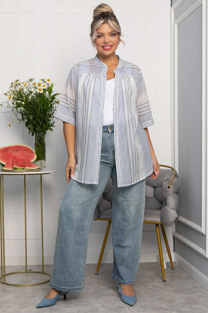 Состав: Хлопок-100%; Сезон: Лето Рост: 170 Страна бренда: Россия Состав: Хлопок-100%; Состав : 100% хлопок Материал : хлопок Цвет : Голубой Принт : полоска Силуэт : свободный Карманы : Отсутствуют Под... Показать описаниекладка : Отсутствует Вид застежки : пуговицы Декоративные элементы : отсутствуют Длина : 50-75 см, 52-78 см, 54-79 см, 56-80 см Отснято с джинсами Б13806-4М и с брюками Б12685-13 Блузка свободного кроя, изготовленная из хлопковой ткани с ярким принтом в виде полос, станет стильным дополнением к вашему гардеробу. Благодаря воротнику-стойке, она выглядит особенно элегантно. Эта блузка станет идеальным дополнением к вашему образу, если вы наденете её поверх топа или футболки. Она отлично подойдёт для прогулки или встречи с подругами. Блузка создаст гармоничный и завершённый образ, при этом сохраняя ощущение свободы и комфорта в течение всего дня. Внимание! Рекомендуем ориентироваться на размерную сетку и выбирать свой привычный размер, согласно размерной таблице. *Допуск отклонения длины при массовом производстве 1-3 см является нормой.