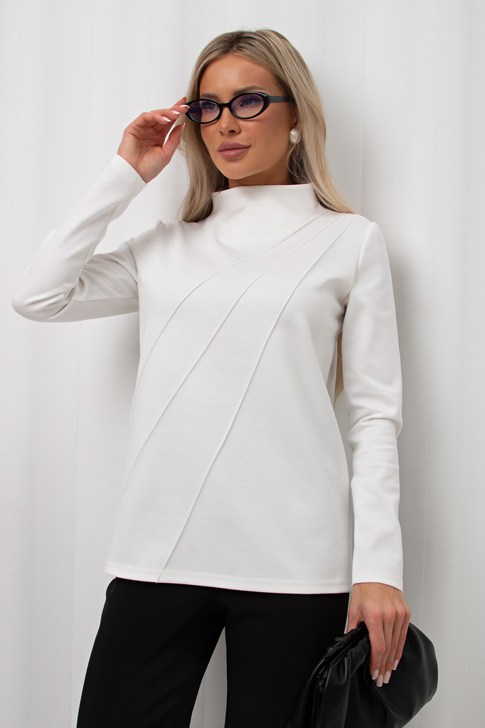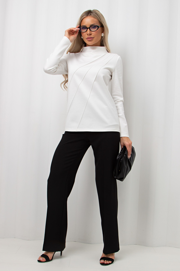 Состав: Вискоза-65%; ПЭ-30%; Эластан-5%; Сезон: Весна Рост: 170 Страна бренда: Россия Состав: Вискоза-65%; ПЭ-30%; Эластан-5%; Стильный джемпер прямого силуэта из плотного трикотажного полотна. Длинны... Показать описанией втачной рукав ,цельнокроенная стойка на внутренней обтачке.Сзади застежка на потайную молнию.Перед дополнен застроченными складками.Низ ровный ,без разрезов. Джемпер представлен с брюками Мирей № 1 Рекомендуемая стирка при t не более 30°. Длина изделия: 63 см Длина рукава: 61 см Рост фотомодели: 168 см Размер фотомодели: 42 Ткань: трикотаж