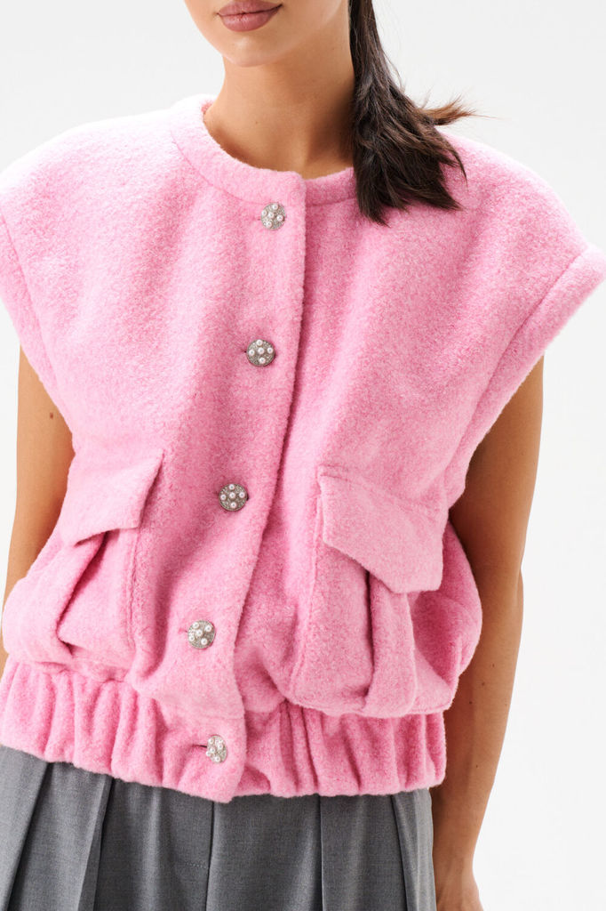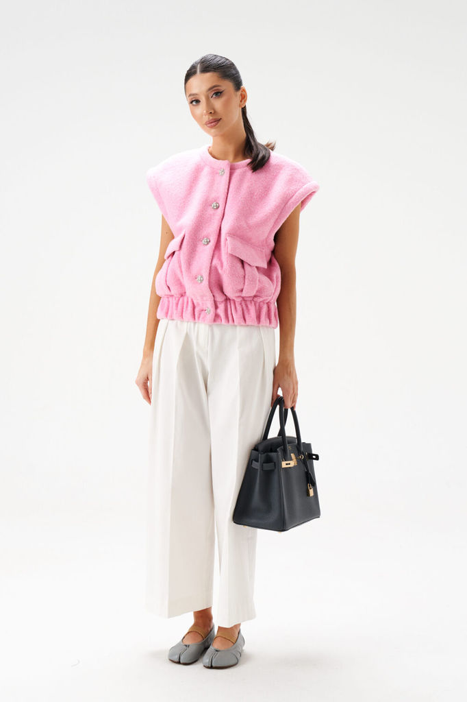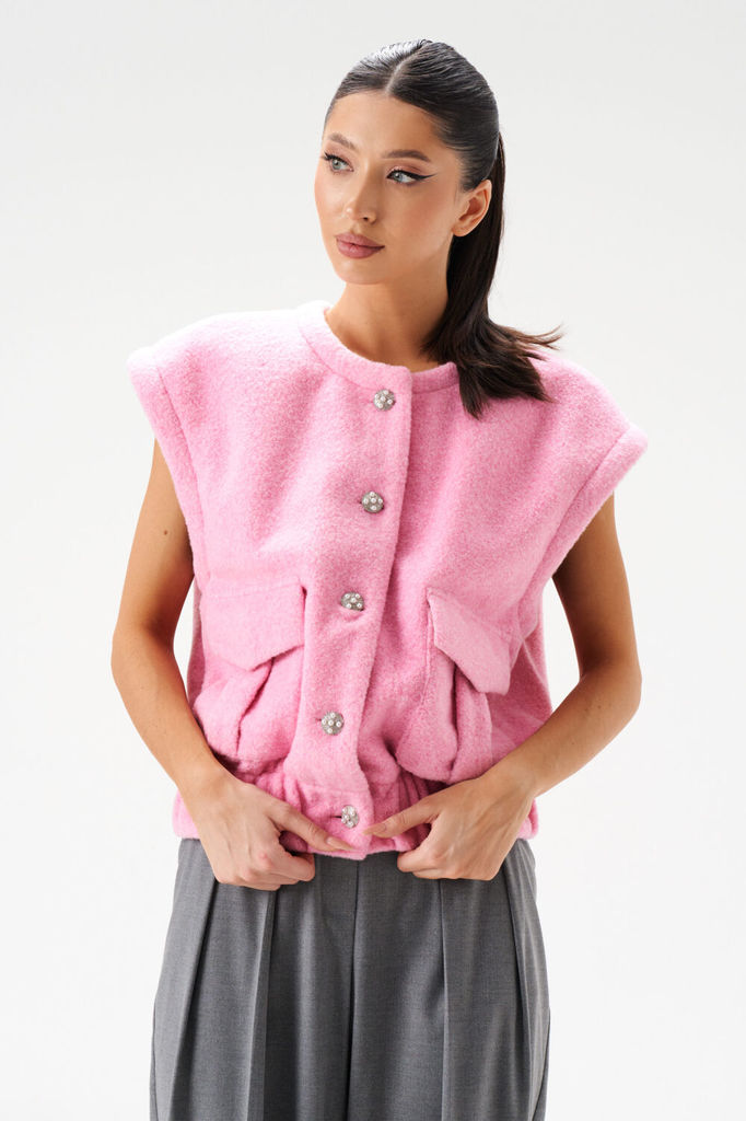 Состав: ПЭ-100%; Сезон: Весна Рост: 170 Страна бренда: Беларусь Состав: ПЭ-100%; Жилет прямого кроя выполнен из приятного, теплого полотна розового цвета. Характеристики: прямой крой, горловина кругла... Показать описаниея отстроченная, подкладка, застежка центральная на акцентыны петли пуговицы, по переду крупные накладные карманы, низ изделия на резинке. Длина по спинке 53 см.