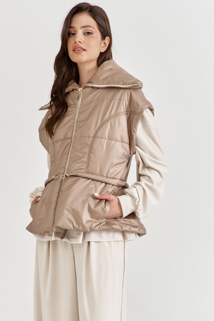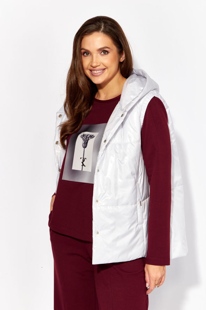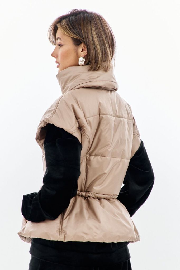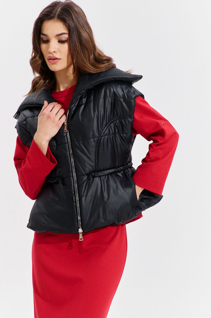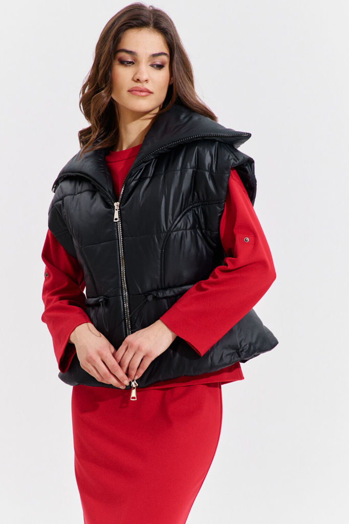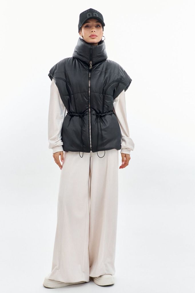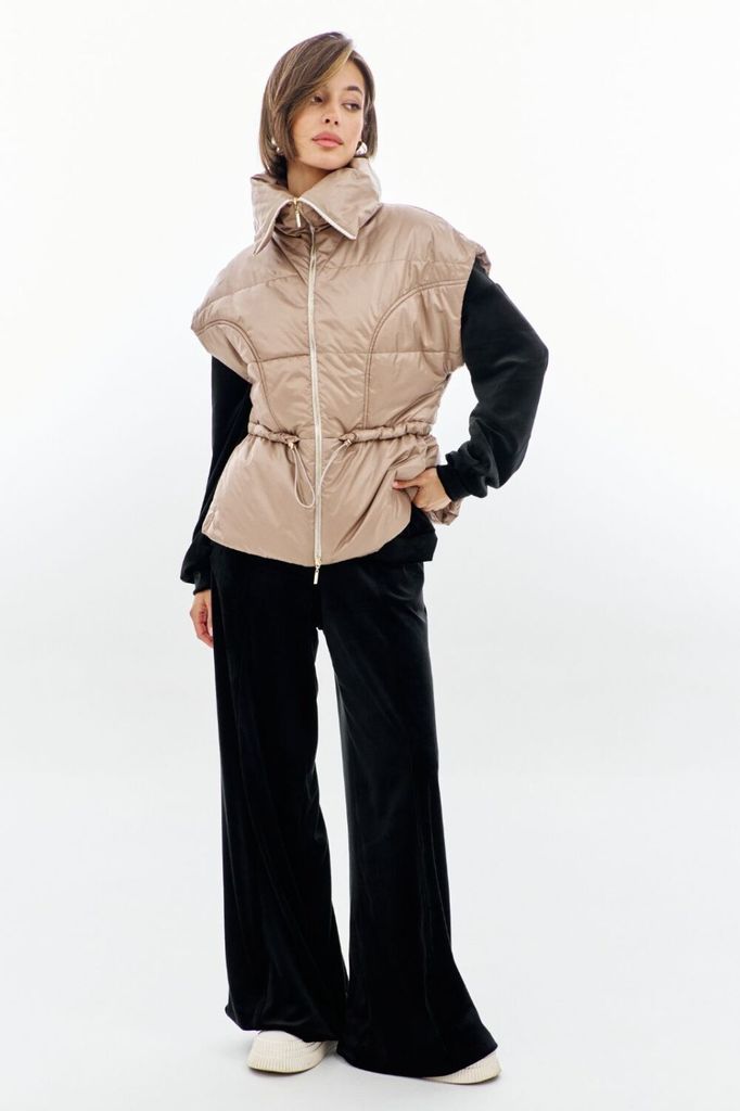 Состав: ПЭ-100%; Спандекс-5%; Сезон: Осень-Зима Рост: 170 Страна бренда: Беларусь Состав: ПЭ-100%; Спандекс-5%; Жилетка полуприлегающего силуэта, длиной чуть выше линии бедер. Жилетка отрезная по лини... Показать описаниеи талии. Лиф спинки и переда с рельефами от пройм до талии. Баска с фигурными подрезами, по переду обработаны карманы. По талии вставлена кулиса, в которую протянута резинка с фиксаторами. По горловине объемная стойка. Линия плеча спущена. по переду застёжка на декоративную тесьму-«молнию». Жилетка на подкладке и утеплена синтепоном.