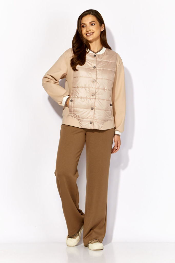 Состав: Куртка- ПЭ-100%; Брюки- Вискоза-67%; Спандекс-5%; Нейлон-28%; Сезон: Осень-Зима Рост: 164 Страна бренда: Беларусь Состав: Куртка: ПЭ-100%; Брюки: Вискоза-67%; Спандекс-5%; Нейлон-28%; Комплект... Показать описание женский, 2х предметный, состоящий из куртки и брюк. Куртка выполнена на сочетании плотного трикотажного полотна и стеганой на синтепоне (VS-100) плащевки , частично на подкладке (стежка) Рукав длинный, со спущенной линией плеча, по низу на манжете (довяз). Центральная часть переда и спинки из стежки. Горловина круглой формы, оформлена довязом. Застежка центральная на кнопки. В рельефах, по переду, функциональные карманы, акцентированы декоративной кнопкой. На спинке отделочная нашивка. Низ куртки оформлен фигурной манжетой. Брюки прямые. По переду наклонные карманы. Пояс притачной с резинкой по кругу.