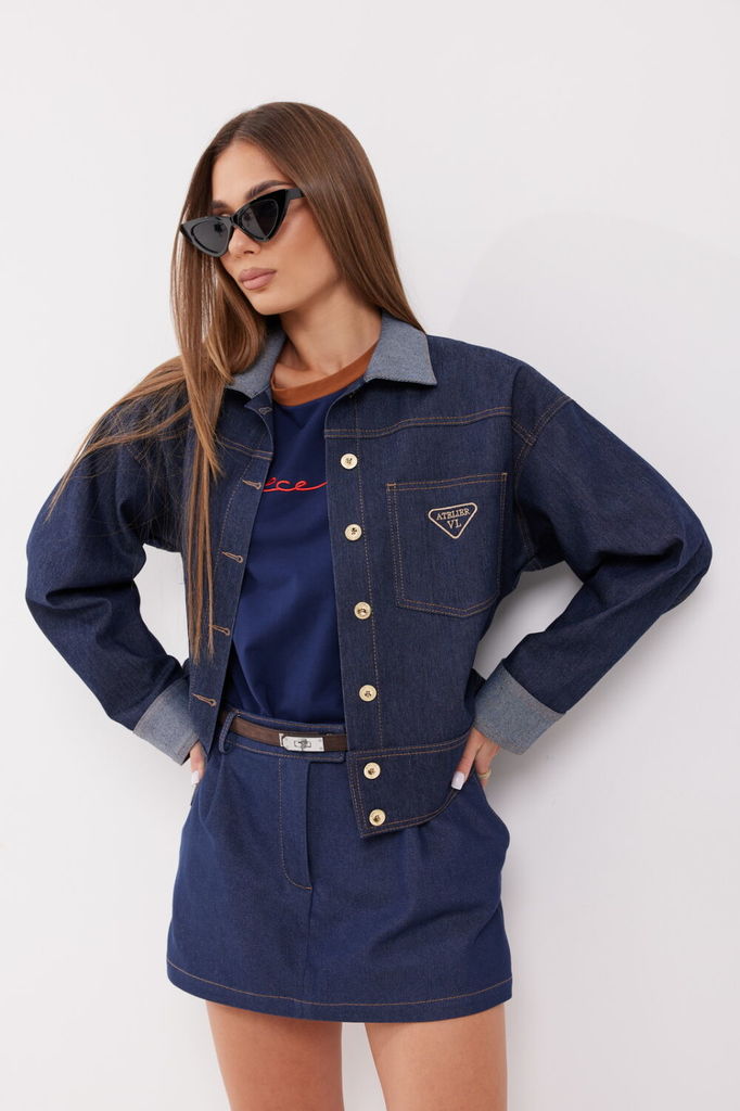 Состав: ПЭ-37%; Хлопок-60%; Эластан-3%; Сезон: Осень-Зима Рост: 164 Страна бренда: Беларусь Состав: ПЭ-37%; Хлопок-60%; Эластан-3%; Жакет свободного силуэта из джинсовой ткани. Застёжка по переду на п... Показать описаниеетли и пуговицы. Воротник рубашечный. По переду накладные карманы, на левом кармане вышивка. Кокетка по спинке и по переду. Расширенная линия плеча. Рукав прямой с манжетой. Манжета с застёжкой на петлю и пуговицу. По низу жакета притачной пояс. Длина жакета 56 см. Длина рукава 74 см. Измерения по готовому изделию: 44 р-р: ОГ - 122 см., ОТ - 102 см., ОБ - 96 см. 46 р-р: ОГ - 126 см., ОТ - 106 см., ОБ - 100 см. 48 р-р: ОГ - 130 см., ОТ - 110 см., ОБ - 104 см. 50 р-р: ОГ - 134 см., ОТ - 114 см., ОБ - 108 см. 52 р-р: ОГ - 138 см., ОТ - 118 см., ОБ - 112 см.