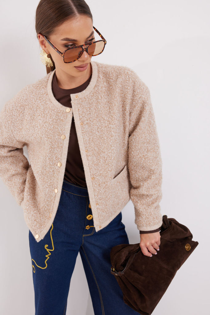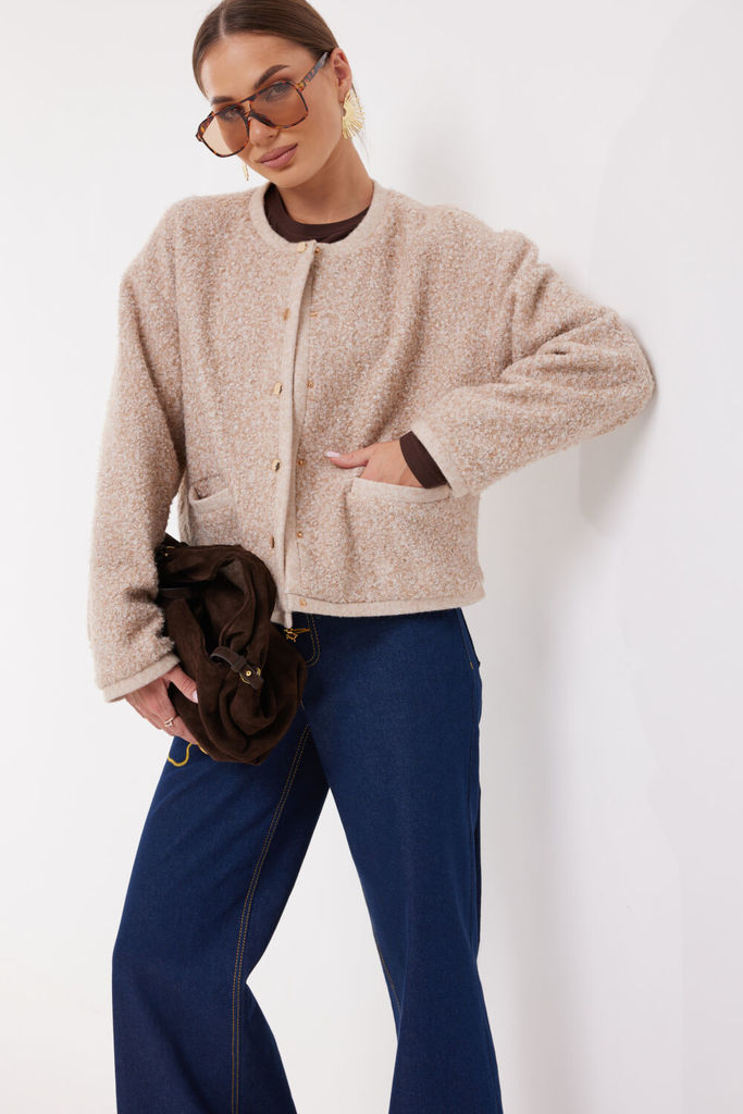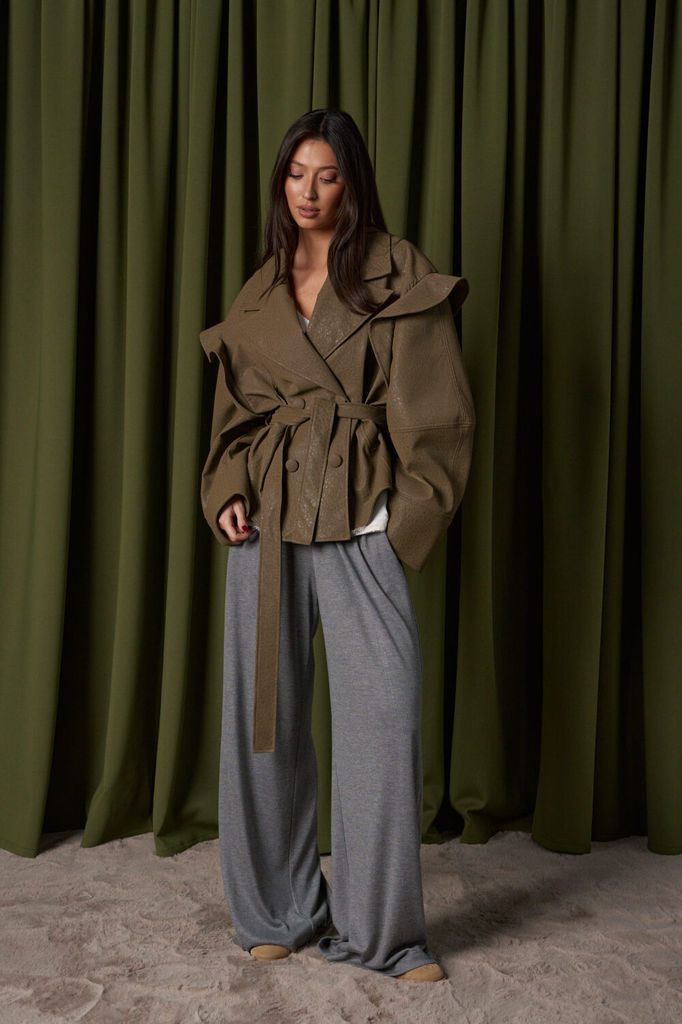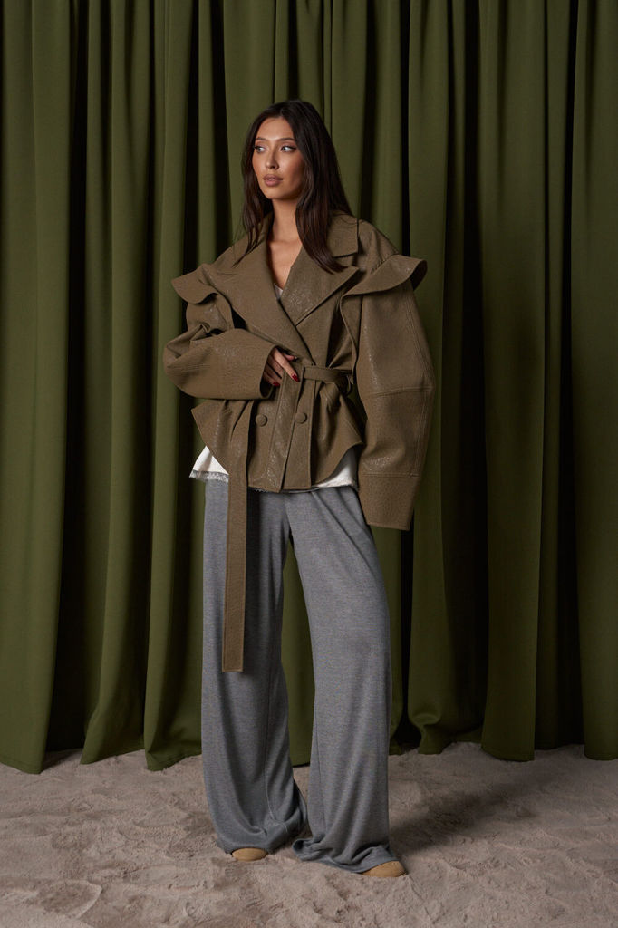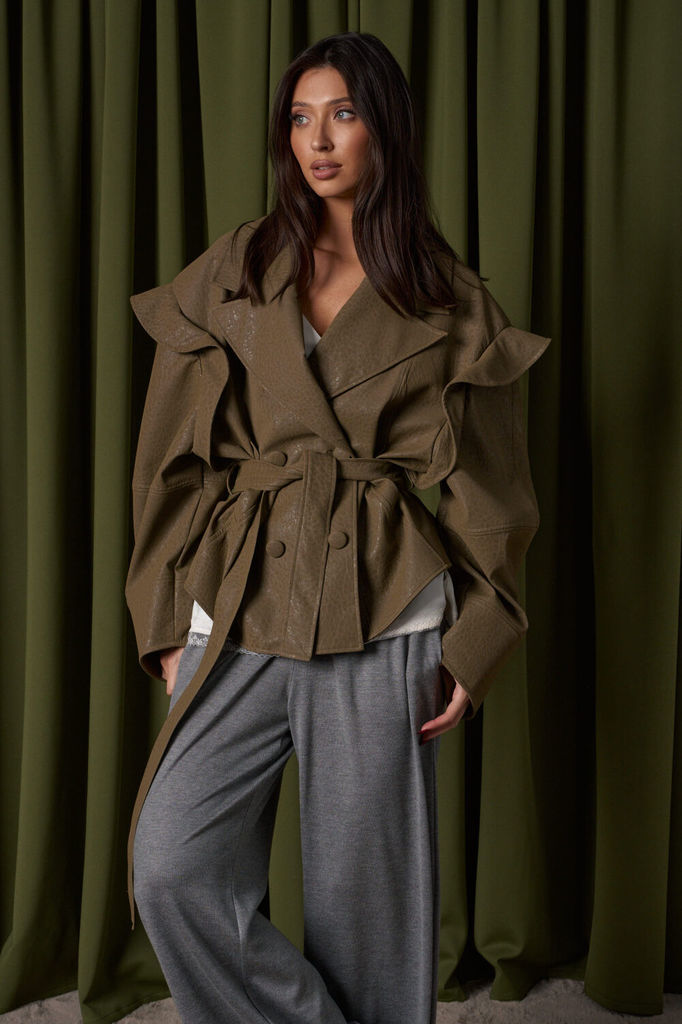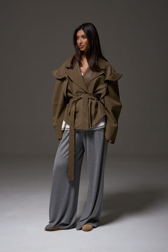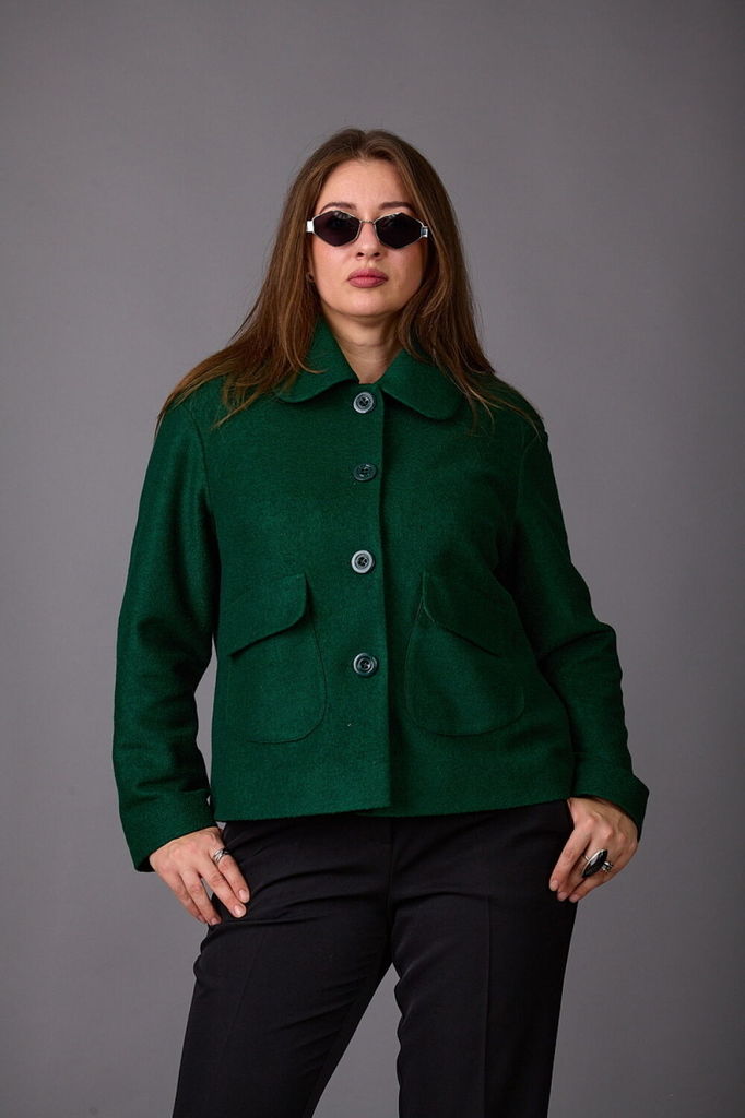 Сезон: Осень-Зима Рост: 170 Страна бренда: Беларусь Укороченный жакет прямого кроя, выполнен из теплой ворсистой ткани, цвета Хаки. Характеристики: прямой крой, подкладка, застежка центральная на петл... Показать описаниеи пуговицы, рукав свободного кроя спущен. Длина по спинке 68 см, длина рукава от края горловины 70см.