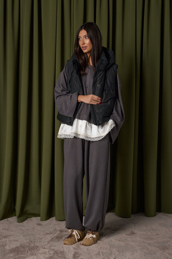 Состав: ПЭ-100%; Сезон: Осень-Зима Рост: 170 Страна бренда: Беларусь Состав: ПЭ-100%; Жилетка полуприлегающего силуэта: - спущенная линия плеча - горловина с объемной стойкой - застёжка на молнию - ба... Показать описаниеска с кулисой на резинке