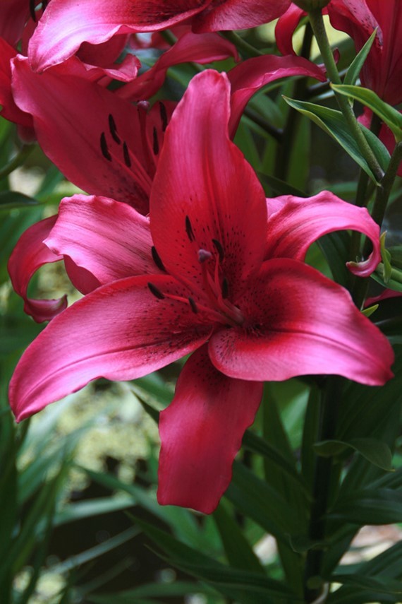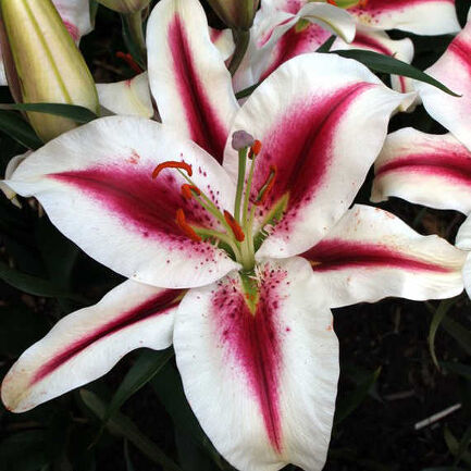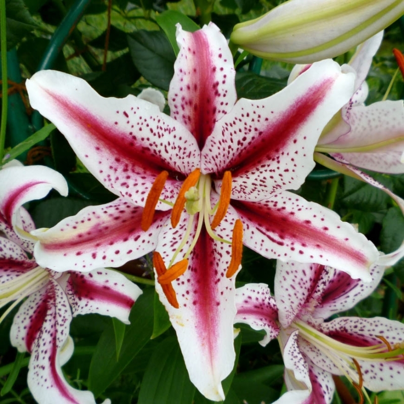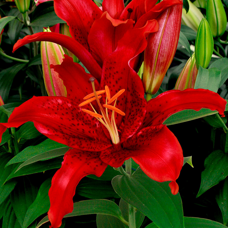 Метровая красотка, луковицы которой способны выдерживать отечественные зимы без дополнительного укрытия. Цветы крупные, пурпурно-малиновые, с темным крапом. Зацветают в конце июля – в августе. Высота ... Показать описаниерастения около 100 см, диаметр цветка до 20 см.
