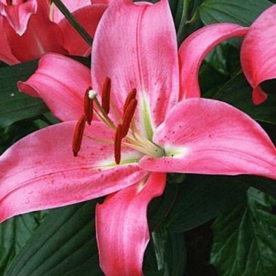 Восточная лилия имеет большие красивые цветки конфетно-розового или малинового цвета с нежными лепестками и волнистыми краями. Цветет в период с середины июля по август. Высота растения - 100 см, диам... Показать описаниеетр цветка - 16 см.