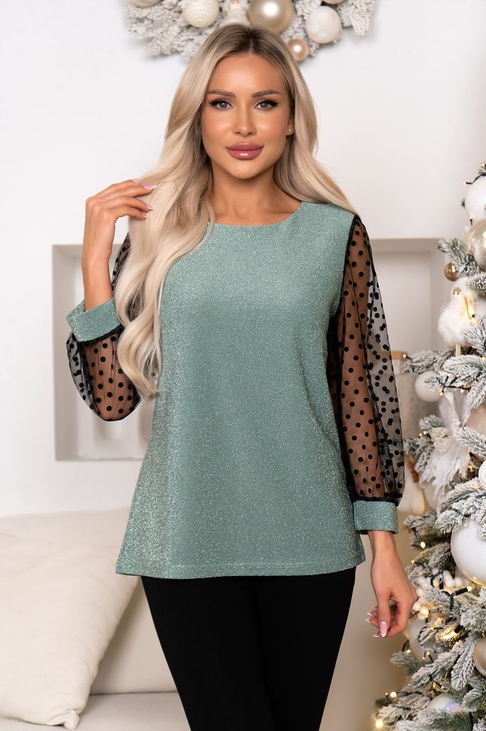 Сезон: круглогодичный Уход за вещами: ручная стирка Вид застежки: нет Состав, %: 95 % полиэстер 5% эластан Ткань: трикотаж люрекс Вес: 0 ТипНоменклатуры: Товар Рост, см: 168 Назначение: офис/повседнев... Показать описаниеная носка ВидНоменклатуры: кардиганы,жакеты,блузы Цвет: фисташковый Наши предложения: Новинка ОписаниеФайла: import_files/f8/f849a4ab-ab8e-11ef-815d-6032b106f8ea_f849a4bd-ab8e-11ef-815d-6032b106f8ea.jpeg#10 Трикотажная блузка цвета фисташки с добавлением люрекса – это стильное изделие, которое сочетает в себе комфорт и элегантность. Блеск люрекса придает блузке особенное сияние, делая ее заметной и привлекательной. Рукава выполнены из воздушного гипюра, добавляя образу женственности и романтичности. Такая блузка станет отличным выбором для создания как повседневных, так и более торжественных образов.