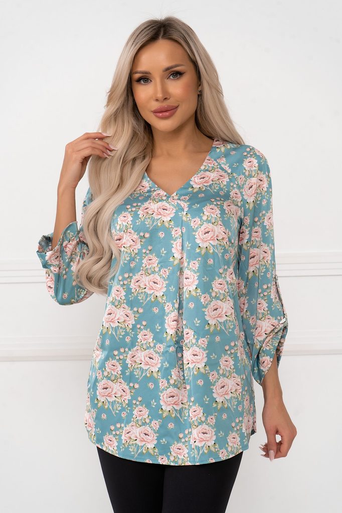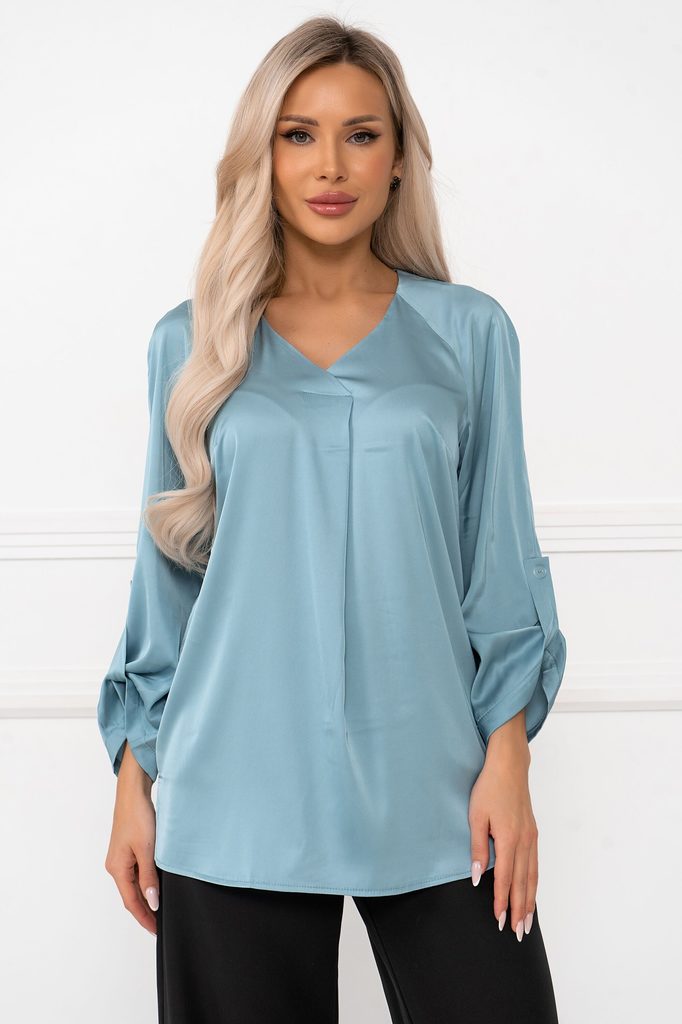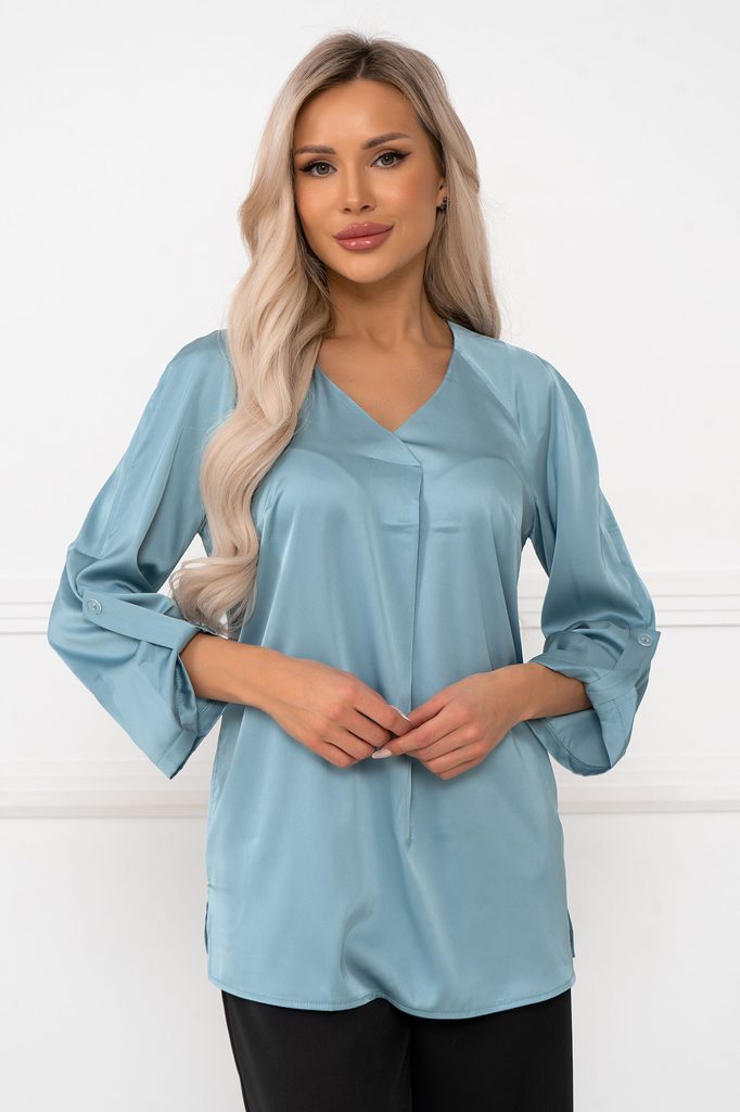 Сезон: круглогодичный Состав, %: 98% полиэстер 2% эластан Вес: 0 ТипНоменклатуры: Товар Рост, см: 170 Назначение: офис/повседневная носка ВидНоменклатуры: кардиганы,жакеты,блузы Цвет: Серо/голубой Опи... Показать описаниесаниеФайла: import_files/b5/b5a1c0b0-c658-11ef-815e-6032b106f8ea_d0ea3bac-ce22-11ef-815e-6032b106f8ea.jpeg#9 Блузка с V-образным вырезом привлекает внимание своей элегантностью и женственностью. Рукав выполнен в стиле "спущенного плеча", создавая легкий и воздушный силуэт. Длина рукава составляет 3/4, а его край аккуратно собран на пуговицу, придавая изделию утонченности и завершенности. Такая блузка станет идеальным выбором для создания как деловых, так и повседневных образов, добавляя нотку шарма и стиля в любой лук.