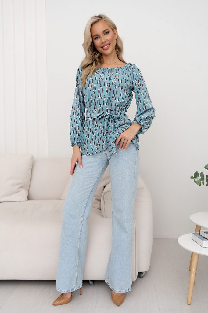 Сезон: круглогодичный Уход за вещами: бережная стирка при 30 градусах Вид пояса: Съемный Состав, %: 65 % вискоза 30% полиэстер 5 % лайкра Ткань: текстиль Стильная блузка с длинным рукавом и оригинальн... Показать описаниеым принтом зебры сочетает в себе яркие цвета — бирюзовый и черный. Черные манжеты и отделка придают изделию элегантность и подчеркивают выразительность дизайна. Пояс помогает создать изящный силуэт, делая эту блузку универсальным выбором для любого случая. Модель оверсайз, спущенный рукав, прямой покрой. Внимание! Пряжка ремня может отличаться от фотографии. 44 размер ОГ-108.ОТ-108.ОБ-116.ДИ-78. ДР от горловины -74 46 размер ОГ-110.ОТ-110.ОБ-118.ДИ-78. ДР от горловины -74 48 размер ОГ-112.ОТ-112.ОБ-120.ДИ-78. ДР от горловины -74 50 размер ОГ-114.ОТ-114.ОБ-122.ДИ-80. ДР от горловины -75 52 размер ОГ-116.ОТ-116.ОБ-124.ДИ-80. ДР от горловины -75