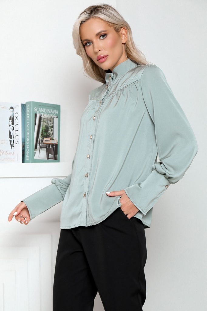 Сезон: круглогодичный Состав, %: 98% полиэстер 2% эластан Вырез горловины: V-образный Вес: 0 ТипНоменклатуры: Товар Рост, см: 170 Назначение: офис/повседневная носка ВидНоменклатуры: кардиганы,жакеты,... Показать описаниеблузы Цвет: ментоловый ОписаниеФайла: import_files/b5/b5a1c0bc-c658-11ef-815e-6032b106f8ea_d0ea3bb2-ce22-11ef-815e-6032b106f8ea.jpeg#9 Блузка цвета ментола украшена нежными цветами, создающими атмосферу свежести и легкости. V-образный вырез подчеркивает зону декольте, добавляя образу женственности. Рукав выполнен в стиле "спущенного плеча", что придает модели свободный и расслабленный вид. Его край аккуратно собран на пуговицу, что добавляет изделию утонченности и завершенности. Длина рукава составляет 3/4, делая акцент на запястье и позволяя сочетать блузку с различными аксессуарами. Этот наряд отлично подойдет как для офиса, так и для прогулок в городе, привнося в образ нотку романтики и весеннего настроения.
