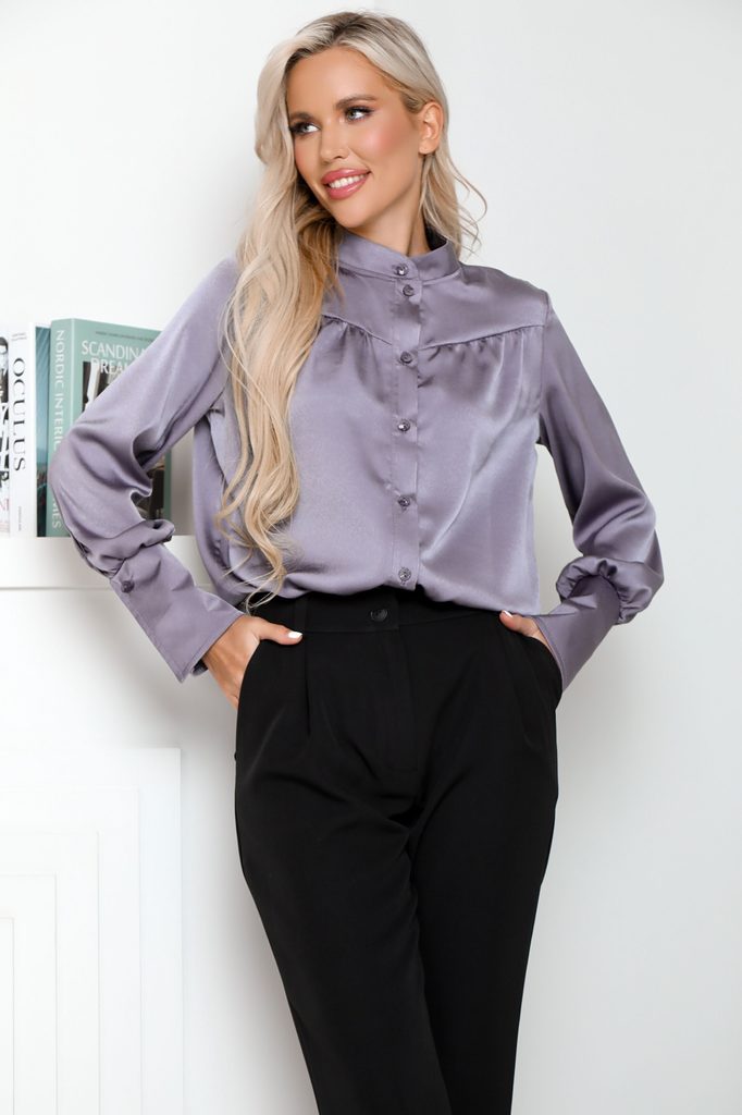 Декоративные элементы: Нет Уход за вещами: ручная стирка Вид застежки: Пуговица Вид пояса: нет Состав, %: 100% полиэстер Ткань: атлас Вырез горловины: рубашечный Легкая блузка из текстильного полотна ... Показать описаниеИдеально по фигуре