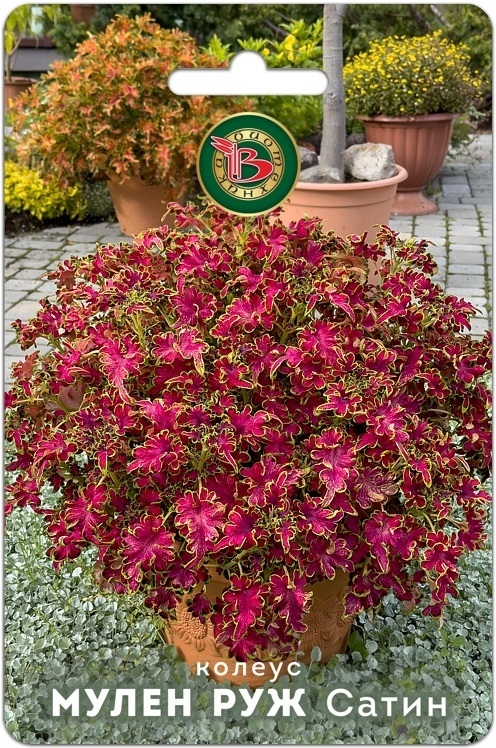 Специальная селекция Колеуса, позволившая получить настоящие карликовые растения с превосходным базальным ветвлением. Естественная форма – аккуратные полусферические кустики, без вытягивания и оголенн... Показать описаниеых побегов. Легкое в выращивании, неприхотливое растение с крупными листьями чрезвычайно яркой окраски. Куст округлый, высотой 25 см, шириной 20 см. Имеет очень позднее зацветание, что сильно продлевает декоративность растения. Прорастание: 10-12 дней при 20-23?С Рассада: 7-8 недель при 16-18 ?С Высадка в открытый грунт: первая декада июня, когда минует угроза заморозков Требует хорошего рассеянного освещения