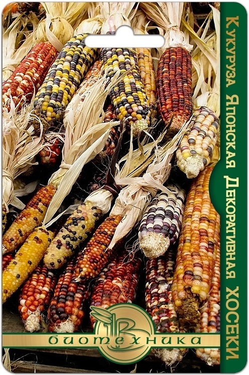 Отличное растение для дизайнерских работ. Растения крупные, высотой до 2 м с широкими светло-зелеными листьями. Отличное решение для высадки у изгородей. Формирует початки с необычными цветными зернам... Показать описаниеи. Каждый початок уникален по сочетанию расцветок. Созревшие и высушенные початки используют в зимних композициях. Цветные початки хороши как самостоятельный объект и в сочетании с различными сухоцветами. Початки сорта “Хосеки” в период молочной спелости съедобны и могут употребляться в пищу. Полностью созревшие зерна не размягчаются при варке. Важное преимущество – легко выращивается и быстро развивается. Прорастание: 5-6 дней при 18-20?С Рассада (при необходимости): 3-4 недель при 16-18 ?С Высадка рассады: апрель-май