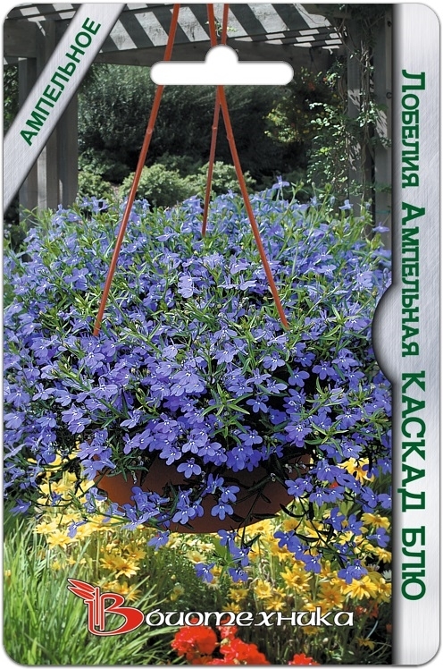 Ампельная форма лобелии, отличается плотным каскадным кустом и очень эффектным видом. Побеги ниспадающие, сильноветвистые, длиной 20-25 см, во время цветения растение сплошь покрыто миниатюрными цветк... Показать описаниеами. Посев: производится конец марта – апрель, мелкие семена равномерно распределяются по поверхности грунта, дополнительно грунтом не присыпаются. Для облегчения пикировки возможно также размещение семян группами по 5-10 штук. Прорастание: всходы появляются на 5-7 день, при температуре 22-25°С. Пикировка: на стадии 3-4 настоящих листьев, группами для получения пышного куста. Дополнительная перевалка не требуется. Начало цветения: середина июня. Высадка в открытый грунт и формирование вазонов – начало июня. Подкормка комплексным минеральным удобрением с микроэлементами.