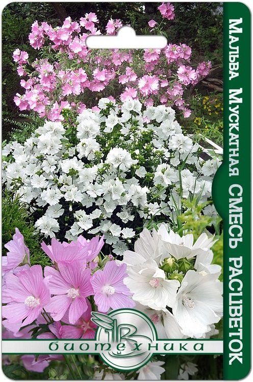 Крупное, неприхотливое многолетнее растение с чудесным запахом. Растения Мальвы мускатной формируют крупную розетку округлых листьев на длинных черешках. Формируемые розеткой соцветия достигают в высо... Показать описаниету 1 м. Цветки диаметром 5 см, многочисленные. Во время цветения растение выделяет много нектара с интенсивным мускатным ароматом, что привлекает большое количество бабочек. Для получения сильных и качественных растений предпочтителен рассадный способ выращивания. Прорастание: 14-20 дней при 18-20?С Рассада: 6-7 недель при 18-20 ?С Высадка в открытый грунт: май Начало цветения: середина июля-август Возможен безрассадный способ выращивания прямым посевом в открытый грунт. В этом случае формируется розетка листьев. Цветение наступает на следующий год. Требуется прореживание растений. Мальва мускатная хорошо зимует и, как правило, не требует дополнительного укрытия. Предпочитает открытые солнечные участки.