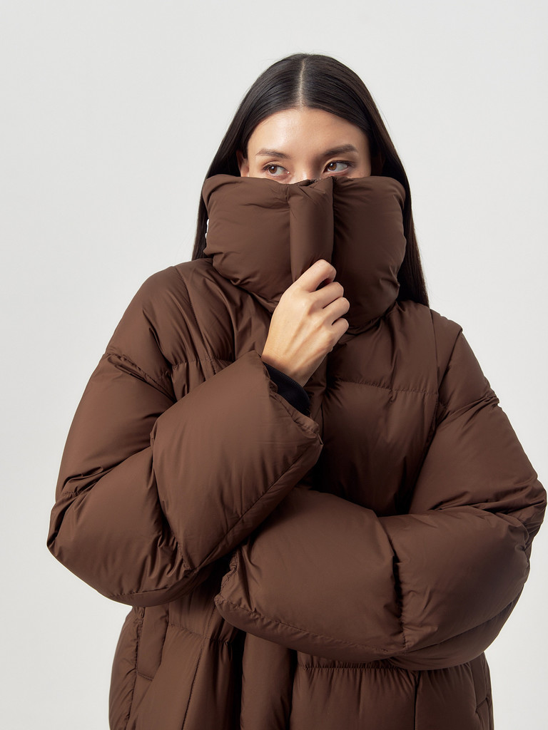 Состав утеплителя: пух 90%, перо 10% Цвет: Шоколадный Основная ткань: полиэстер 100% Подкладка: нейлон 100% Особенности ткани: плащевая ткань с ветро и влагозащитным покрытием Покрой/Силуэт: удлиненны... Показать описанией кокон Тип рукава: рубашечный Тип воротника: стойка Вид застежки: молния и установочные кнопки Пояс: нет Стиль: smart casual Длина изделия (170 см): 112 Обхват бедер: 134 Обхват груди: 136,5 Ширина рукава (по низу): 34 Ширина рукава (охват плеча): 55 Длина рукава (170 см): 46,5 Декоративные элементы: карманы с листочками, трикотажные манжеты Мембрана RaftPro: есть Тип карманов: Листочка с втачными концами Капюшон: нет Ширина рукава (середина): 55 Цвет одежды на фотографиях может незначительно отличаться от оригинального.