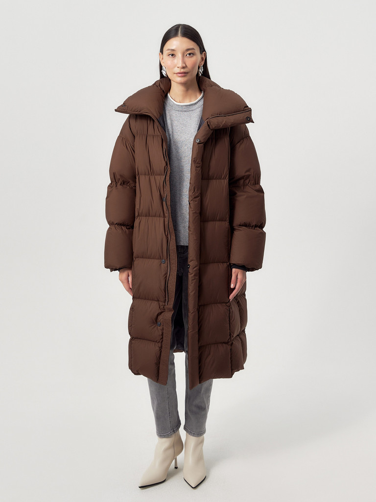 Длинный пуховик с капюшоном и утеплителем 90% пух, 10% пероВопросы по товару