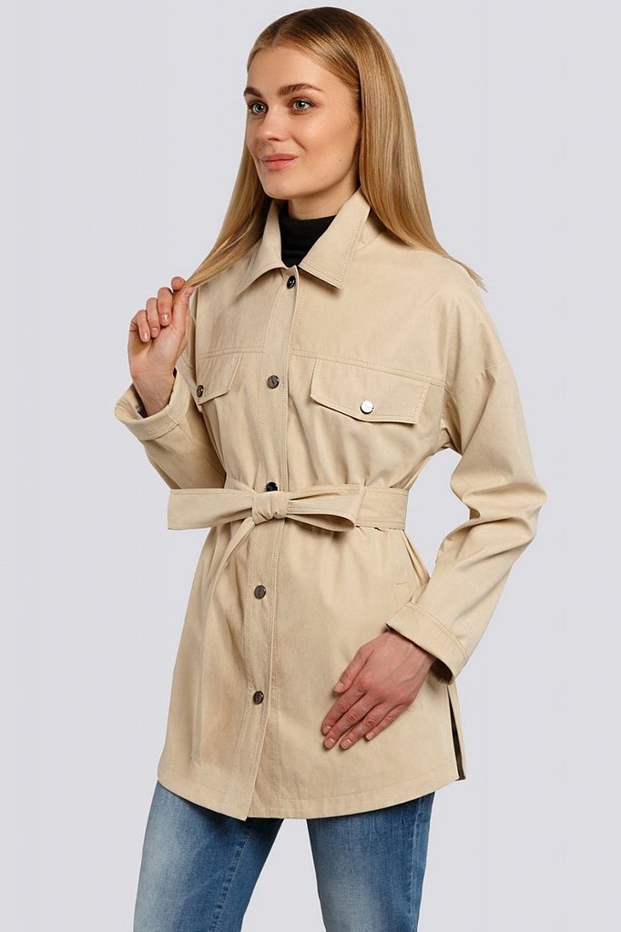 Одним из топовых элементов женского гардероба является ветровка, которая весной ставится фаворитом для многих девушек и женщин. Ветровка свободного силуэта, который добавляет образу легкую небрежность... Показать описание, вновь в числе модных тенденций. Талию подчеркивает завязывающийся пояс. Застежка на планку с кнопками, спереди отрезные кокетки с отделочными клапанами. По бокам разрезы, низ фигурный. Состав ткани: 50% хлопок, 30% вискоза, 20% полиэстер.