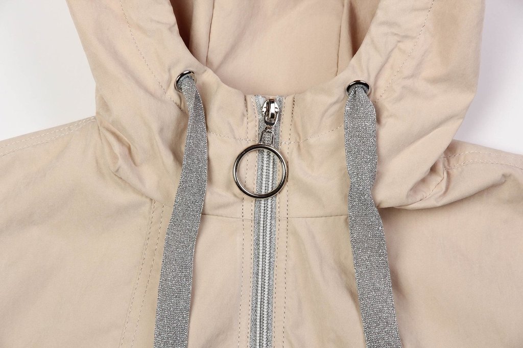 Легкая, защищающая от ветра и дождя – это и есть та самая ветровка, которая должна быть в гардеробе каждой женщины. Модель выполнена из хлопковой плащевой ткани, в стиле спорт-шик, спорт-кэжуал, что п... Показать описаниеозволяет ей сочетаться с платьями, юбками, джинсами и элегантными строгими брюками. Цветовая гамма представлена спокойными летними тонами. Наша модель очень оригинальна по дизайну: интересный вариант кроя, разрезы по боковой линии, разная длина спинки и переда, объем изделия регулируется кулисой. Карманы на молнии, капюшон отстегивается, комфортный покрой рукава – реглан. Спинка длиннее переда на 6 см. Ткань:50% хлопок, 30% вискоза, 20% полиэстер.