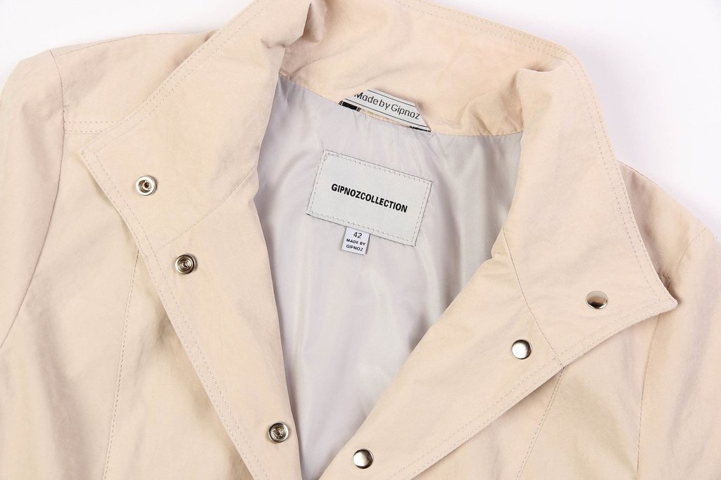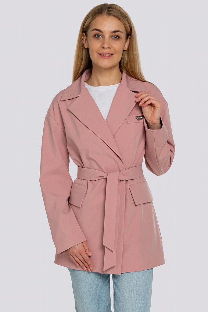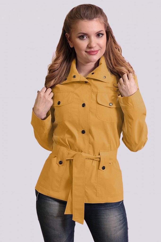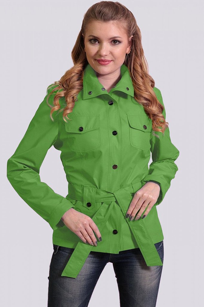 Не так давно женские ветровки подразумевали только практичный спортивный фасон, сегодня модные ветровки стали более разноплановыми, поскольку выполнены они в различных стилях, в том числе и в элегантн... Показать описаниеых моделях. Женская ветровка-жакет обладает свободным кроем, приспущенной линией плеч, а также имеет длину до середины бедра. Английский воротник, двубортная застежка на пришивные кнопки. На переде карманы с клапанами и декоративная нагрудная листочка с металлическим декором. Пояс в комплекте. Ткань бондинг состоит из двух слоев: верхний слой костюмная ткань, нижний слой-тонкое трикотажное полотно. Такое сочетание придает ему нужную плотность, хорошо пропускает воздух.