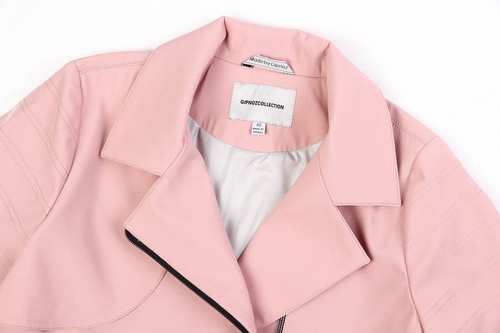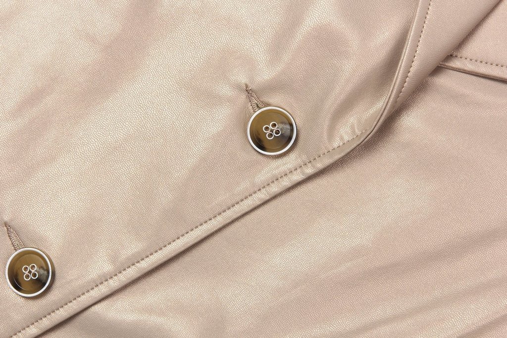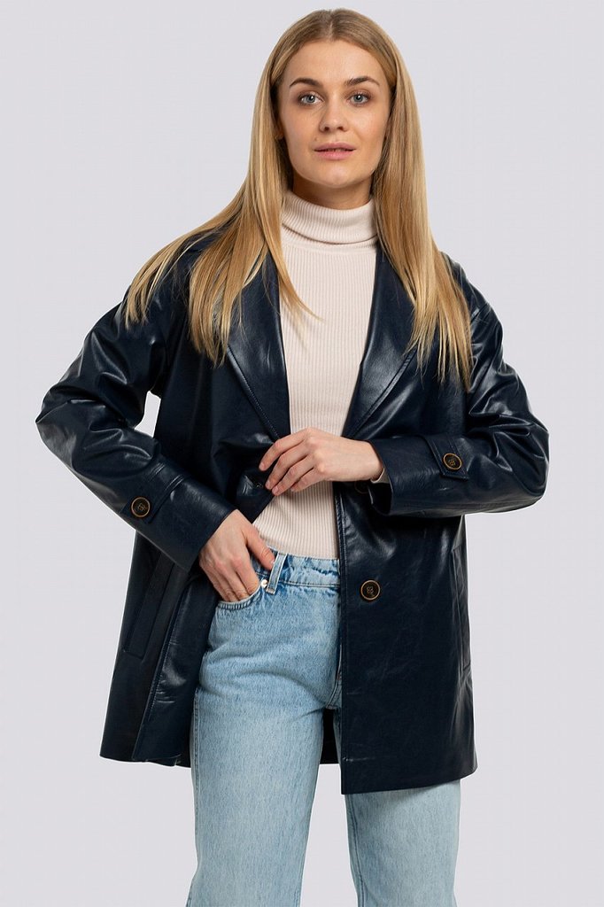 Экокожа все также продолжает оставаться в главных фэшн-трендах этого сезона. И одним из трендовых предметов гардероба, представленных в кожаном исполнении будет жакет. Стильный, универсальный и слегка... Показать описание дерзкий жакет свободного кроя и спущенной линией плеч. Английский воротник, застежка на петли и пуговицы. На переде карманы с листочкой, на рукавах декоративные паты с пуговицами. Талию можно подчеркнуть с помощью пояса.