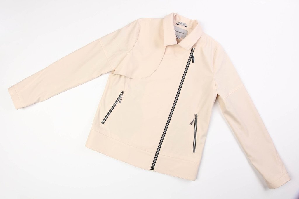Ветровка с отложным воротником. Застежка смещенная на молнию. Ткань бондинг состоит из двух слоев: верхний слой костюмная ткань, нижний слой-тонкое трикотажное полотно. Такое сочетание придает ему нуж... Показать описаниеную плотность, хорошо пропускает воздух. Ухаживать за такой тканью несложно: стирать изделие можно, как ручным способом, так и в стиральной машине при невысокой температуре моющими средствами без содержания хлора.