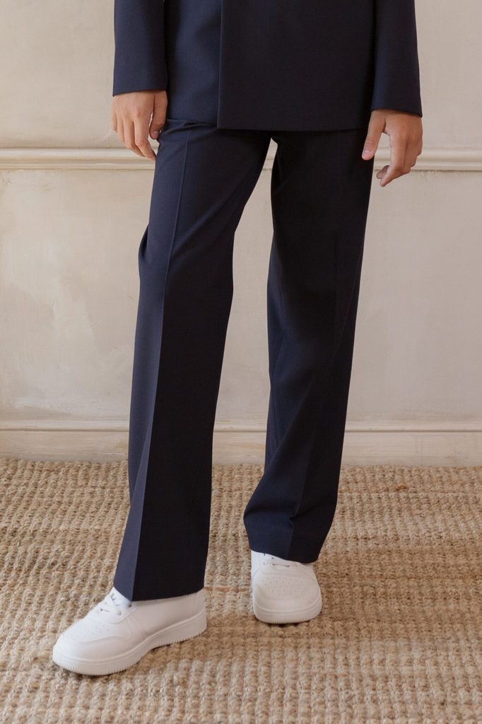 Цвет: Синий Брюки классические, со стрелками. Пояс на корсажной ленте, с регулировкой по талии на эластичную тесьму, боковые карманы с прямым «входом». По низу брюк тесьма. Передняя половинка на подкл... Показать описание аде. Состав: 37% ШЕРСТЬ, 58 %ПЭ,5% ЭЛАСТАН