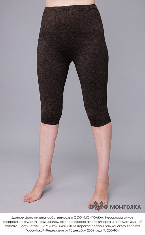 Женские бриджи станут заменой колготкам или брюкам — это самая практичная и универсальная вещь для холодной погоды. Они греют ноги, сочетаются с осенней и зимней обувью, добавляют разнообразия в гарде... Показать описаниероб и утягивают фигуру. Бриджи, в составе которых 100% шерсти монгольской овцы, необходимо носить при различных заболеваниях: ревматизм, артрит, варикозное расширение вен, остеохондроз и боль в суставах. Они помогут пожилым людям, а также пригодится тем, кто долго находится на природе. Теплые бриджи из овечьей шерсти впитывают пот и излишнюю влагу, при этом оставаясь сухими и продолжая согревать. Натуральные волокна обладают большим количеством ланолина в составе и не копят опасные микроорганизмы — благодаря такому свойству материал очень гигиеничен. Женские утепленные бриджи станут приятным подарком для мамы, бабушки или сестры и долгое время будут дарить тепло и уют их обладательнице. В нашем ассортименте вы найдете еще больше товаров из натуральной шерсти, доставленных напрямую из Монголии. * Производитель: Монголия, TOD * Состав: 100% шерсть монгольской овцы * Цвет: шоколадный * Размер: 46-52 Размер \t Обхват талии \t Обхват бедер \t Длина внутр. шов \t Длина общая 46/M \t 69-74 см \t 95-100 см \t 38 см \t 64 см 48/L \t 74-78 см \t 100-104 см \t 39 см \t 67 см 50/XL \t 78-82 см \t 104-108 см \t 40 см \t 68 см 52/2XL \t 82-86 см \t 108-112 см \t 40 см \t 70 см