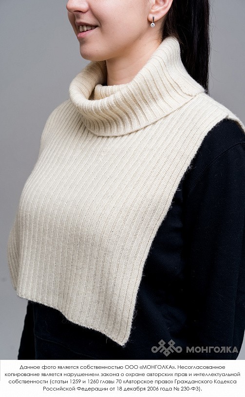 Шерстяной воротник будет прекрасным дополнением женского гардероба. Чтобы он согревал в самые сильные морозы рекомендуем приобретать аксессуары, в составе которых натуральная шерсть. Воротник из 100% ... Показать описаниешерсти монгольской овцы согревает и удерживает теплою. Натуральные волокна овечьей шерсти обладают большим количеством ланолина в составе и не копят бактерии и опасные микроорганизмы — благодаря такому свойству изделия из этого материала очень гигиеничны. К воротнику из овечьей шерсти можно подобрать комплект из ассортимента головных уборов. В нашем каталоге вы найдете еще больше товаров из натуральной шерсти, доставленных напрямую из Монголии. * Производитель: Монголия, TOD * 100% шерсть монгольской овцы * Цвет: бежевый