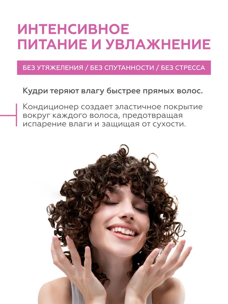 Кондиционер подходит для регулярного ухода за кудрявыми, вьющимися и непослушными волосами. Комбинация активных компонентов облегчает расчёсывание локонов и способствует формированию завитков. Гидроли... Показать описаниезованный протеин пшеницы и гидролизованное киноа заполняют повреждения в кутикуле волоса, снижая ломкость и возвращая прядям эластичность. Масла инка-инчи и чиа обеспечивают интенсивное увлажнение. Богатый витаминами экстракт опунции способствует восстановлению структуры локонов. Средство предотвращает спутывание и пушение, а также облегчает процесс укладки, придавая локонам чёткость и упругость.