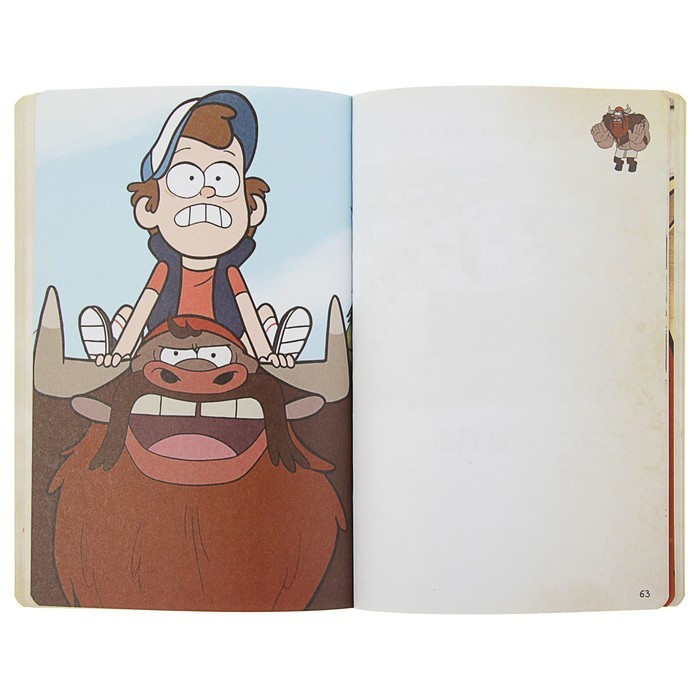 Это не просто блокнот — это целый мир развлечений вместе с любимыми героями Гравити Фолз: лабиринты, головоломки, раскраски и много страниц для своих заметок, рисунков и прочего. На каждой странице — ... Показать описаниегерои сериала и их забавные фразочки.