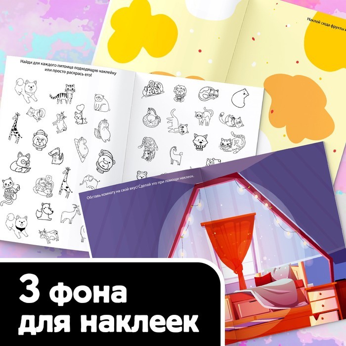 С этим альбомом ребёнок увлекательно проведёт время. Малыш найдёт множество красочных наклеек с разнообразной мебелью и предметами декора, с помощью которых можно создать комнату мечты. А также 15 раз... Показать описаниеворотов, куда можно разместить наклейки. Ребёнок будет заполнять фоны наклейками с мебелью и декором и придумывать интересные истории! Польза от игр с наклейками * Тренировка мелкой моторики, усидчивости и аккуратности. * Расширение кругозора — для этого во время игры проговаривайте вместе с малышом название мебели и декора. Особенности альбома * Внутри есть 15 фонов для наклеек. * 10 страниц с наклейками (более 600 штук). * Размер альбома: 21 ? 29,7 см. * Рекомендовано для детей от 3 лет.