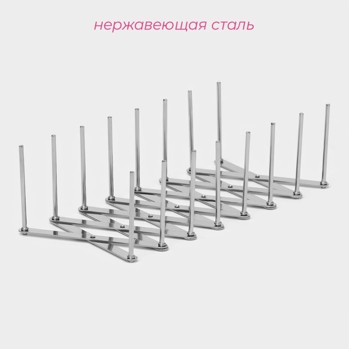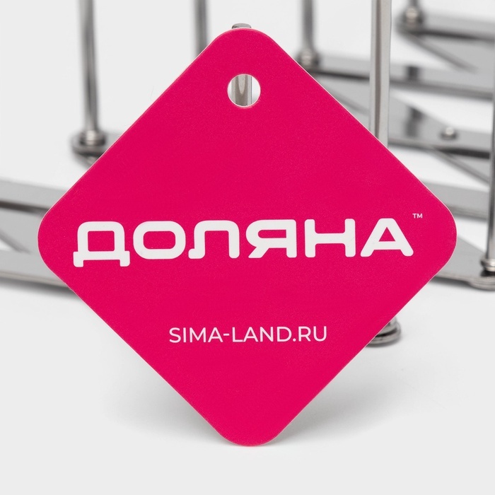 Мы часто задаем себе вопрос: как сэкономить пространство на кухне? Ответ прост: использовать специальные приспособления и держатели. Сушилка для кружек обязательно должна быть в каждом доме, ведь это ... Показать описаниене только удобно, но и красиво! Преимущества: * Хромовое покрытие выглядит дорого и стильно. * Надёжный металл не деформируется от активного использования, будет служить вам долгие годы. * Сушилка рассчитана на 6 кружек и позволяет разместить каждую из них так, что она не будет мешать другим. * Аккуратная ножка гарантирует устойчивость, а малый вес и компактные габариты позволят с лёгкостью перевозить и хранить стандартный сервиз. Выбирайте стильные и функциональные вещи от торговой марки Доляна, а мы порадуем вас оптимальным соотношением цена-качество.