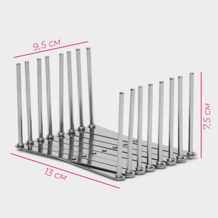 Удобная подставка предназначена для экономии места на кухне, а именно компактного хранения крышек в одном месте. Преимущества: * Универсальный держатель помогает решить проблему с ограниченным количес... Показать описаниетвом мест хранения, эффективно использовать пространство в доме. * Подставку можно использовать для сушки и хранения крышек разных размеров. * Изделие прочное, не гнётся, не окисляется.