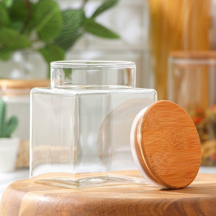 Стеклянная банка с бамбуковой крышкой – это идеальный аксессуар для хранения сыпучих продуктов. Эта банка станет не только практичным решением для хранения, но и стильным элементом вашего кухонного ин... Показать описаниетерьера. Она идеально подходит для хранения сахара, соли, круп и других сыпучих продуктов, добавляя гармонию и порядок на вашей кухне. Объем в 1,3 литра позволяет удобно организовать ваши любимые ингредиенты, сохраняя их свежесть и аромат. * Эко-дизайн: бамбуковая крышка не только красиво смотрится, но и обеспечивает надежное герметичное закрытие. * Качественные материалы: изготовленная из боросиликатного стекла, банка устойчива к перепадам температур и легко очищается * Удобство в использовании: гладкая текстура и квадратная форма позволяют эффективно использовать пространство на кухне. * Простота ухода: можно мыть в посудомоечной машине, что делает её уход легким и удобным. Такой аксессуар станет отличным подарком для ценителей стиля и функциональности!