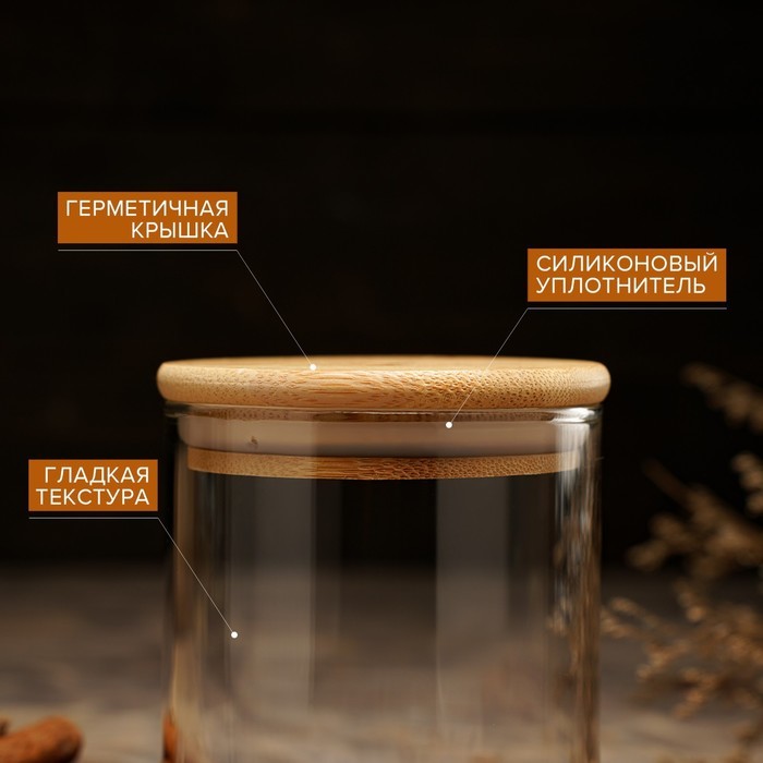 Банка для сыпучих продуктов с бамбуковой крышкой «Эко» 450 мл, 8.5?10.5 смВопросы по товару