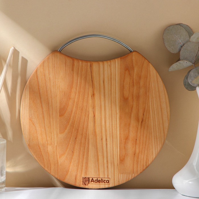 Доска разделочная деревянная с металлической ручкой Adelica, d=20?1,8 см, пропитана минеральным маслом, берёза