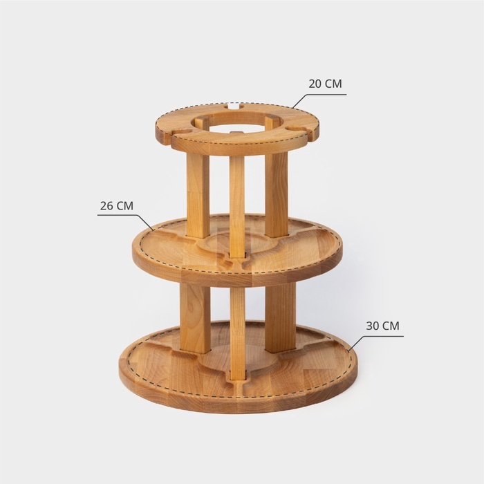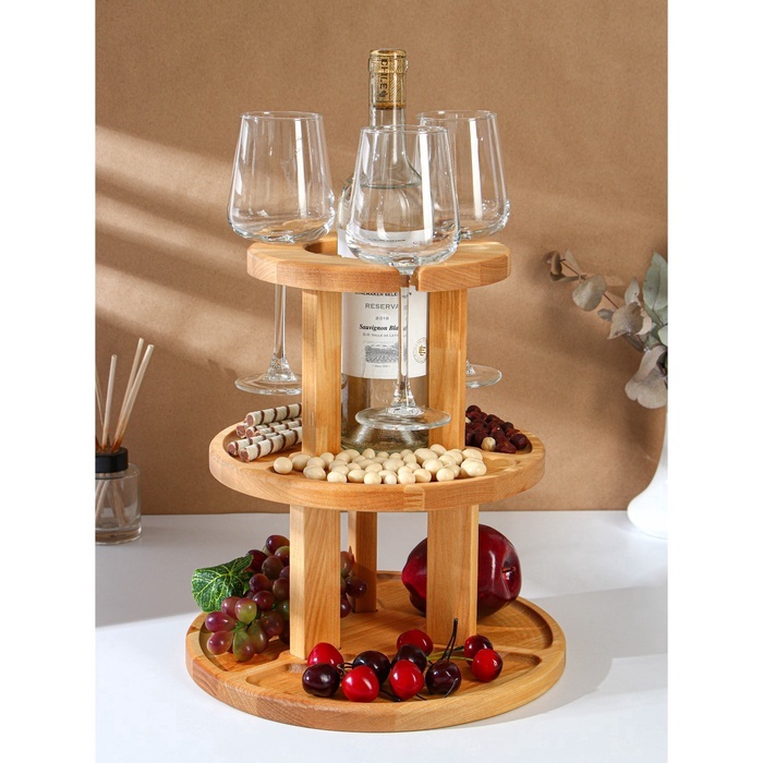 Менажница Adelica, 3-х ярусная с подставкой для вина, d=30?1.8 см, d=26?1.8 см, d=20?1.8 см, дерево берёза, в подарочной коробке Вопросы по товару