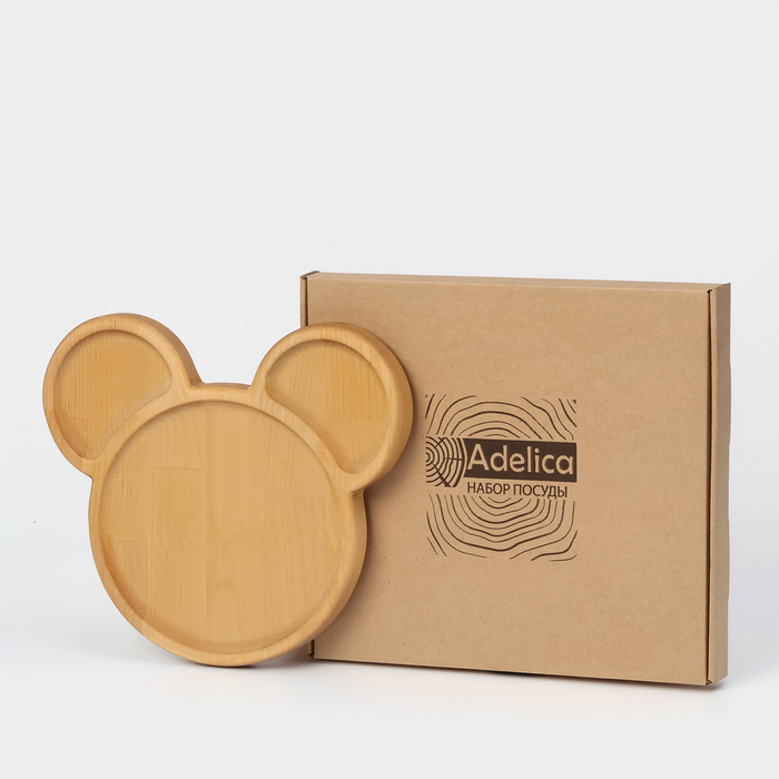 Менажница Adelica «Микки», 3 секции, 25?23?1.8 см, пропитана минеральным маслом, в подарочной коробке, дерево берёза