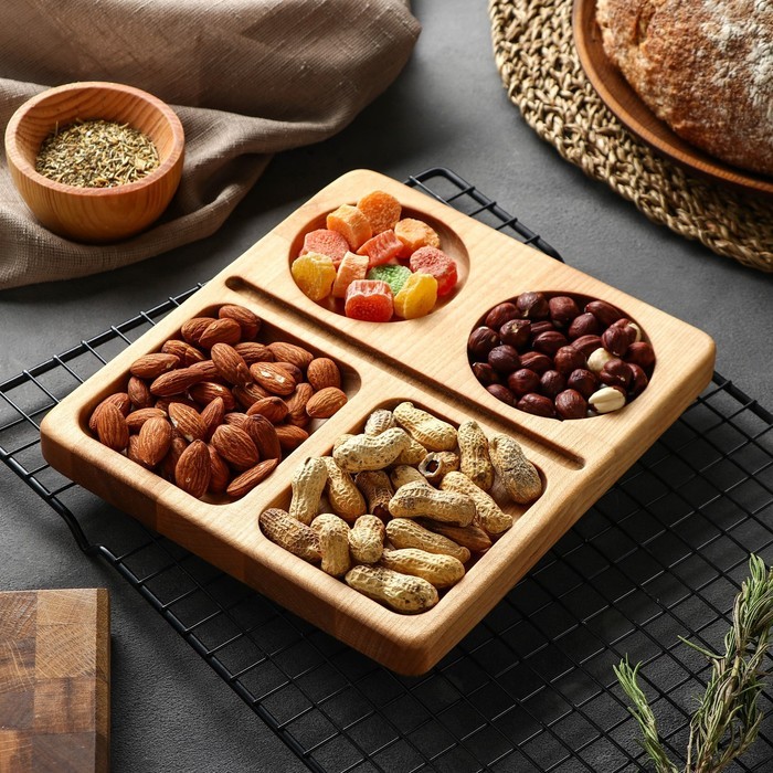 Менажница Adelica, 20?18?1.8 см, 4 ячейки, пропитано маслом, дерево берёза