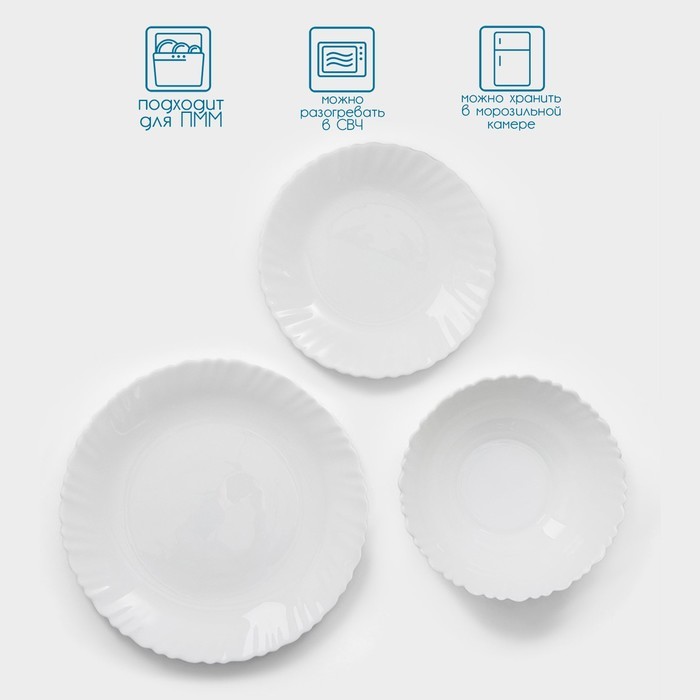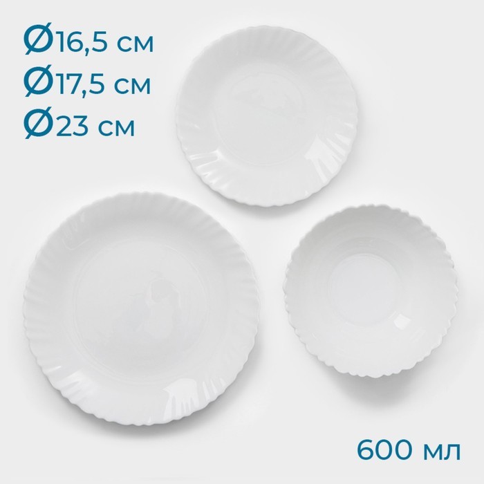 Столовый сервиз «Дива», 18 предметов: 6 тарелок d=17.5 см, d=23 см, d=16.5 см, стеклокерамика, белыйСтоловый сервиз «Дива», 18 предметов: 6 тарелок d=17.5 см, d=23 см, d=16.5 см, стеклокерамика, белыйСтоловый сервиз «Дива», 18 предметов: 6 тарелок d=17.5 см, d=23 см, d=16.5 см, стеклокерамика, белый