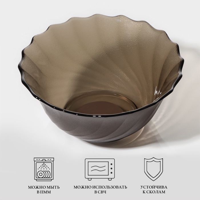 Глубокий стеклянный салатник коричневого цвета объёмом 2,5 литра подойдёт для подачи и приготовления больших порций салатов, супов и гарниров. Универсальная форма и размер делают его удобным для семей... Показать описаниеных обедов и праздничных застолий. Материал выдерживает высокие температуры, что расширяет способы применения — от разогрева в микроволновой печи до подачи горячих блюд. Преимущества: * Закалённое стекло: прочное и термостойкое, сохраняет целостность при резких перепадах температуры и механических воздействиях. * Объём 2,5 л и диаметр 24 см: достаточно вместительная для подачи на несколько человек или приготовления салатов и горячих блюд. * Гладкая поверхность и круглая форма: простой дизайн не отвлекает от наполнения и легко сочетается с разной посудой. * Удобство ухода: можно мыть в посудомоечной машине, стекло не впитывает запахи и сохраняет прозрачность. Используйте миску для сервировки, приготовления и хранения блюд с удобством и без лишних хлопот. Дополнительно Рекомендации по уходу: Можно мыть в посудомоечной машине и использовать в СВЧ-печи.