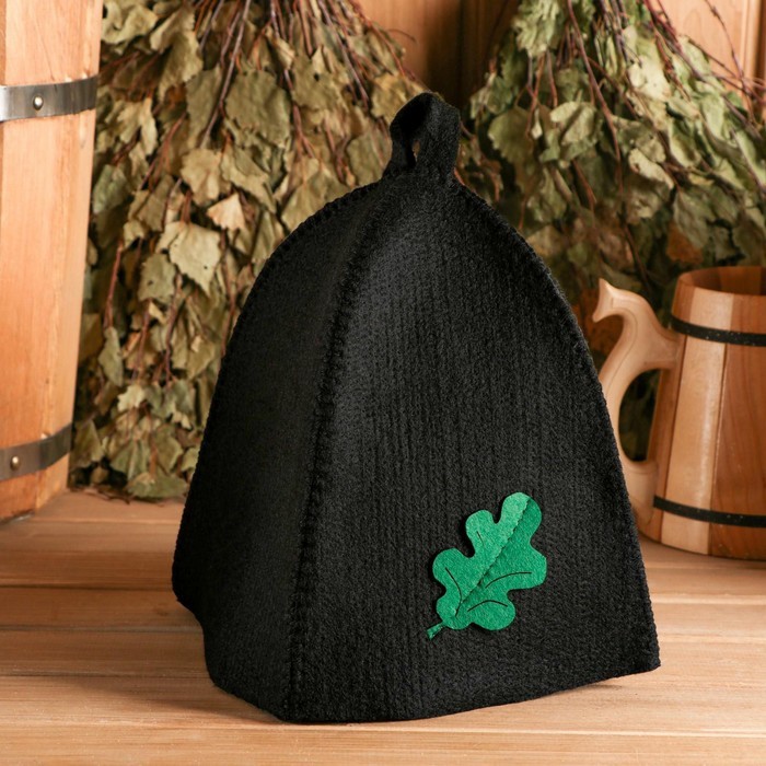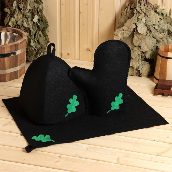 Набор для бани с аппликацией «Дубовый лист», 3 предмета: шапка, коврик, рукавица, войлок, тёмныйВопросы по товару