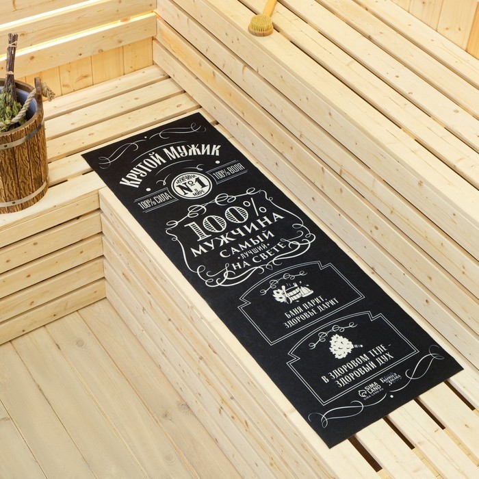 Коврик - лежак для бани и сауны с принтом «Крутой мужик, самый лучший на свете», 150?50 см, полиэфир 70%, шерсть 30%, «Банная забава»Вопросы по товару