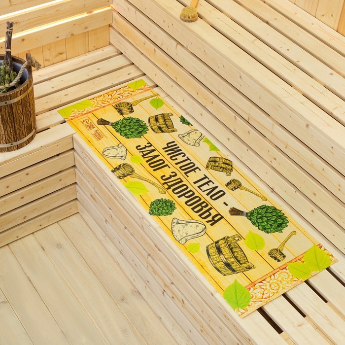 Коврик - лежак для бани и сауны с принтом «Чистое тело — залог здоровья», 150?50 см, полиэфир 70%, шерсть 30%, «Банная забава»Вопросы по товару