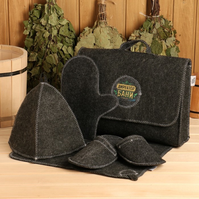 Набор для бани и сауны «Директор бани», 5 предметов: шапка, коврик, рукавица, тапочки, портфель, «Банная забава»Вопросы по товару
