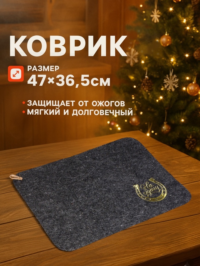 Коврик-сидушка для бани «С Новым Годом!» от «Добропаровъ» — это практичный аксессуар, который делает пребывание в сауне комфортным и создает праздничную атмосферу. Плотная ткань из шерсти и полиэфира ... Показать описаниенадежно защищает от контакта с горячими поверхностями. * Оптимальные размеры 47х38 см: Такой площади хватает для комфортного размещения на полке. Коврик не занимает много места, его удобно хранить и брать с собой в баню. * Натуральная шерсть в составе 30%: Шерсть создает мягкую прослойку между телом и горячей деревянной лавкой. Материал впитывает влагу, сидеть на такой сидушке сухо и приятно. * Серый фон и праздничный принт: Нейтральный серый цвет практичен в использовании. Яркая новогодняя надпись «С Новым Годом!» сразу создает в парной радостное предпраздничное настроение. * Прочность и долговечность: Полиэфирные волокна составляют 70% материала. Они придают коврику прочность, устойчивость к деформации и высоким температурам. Изделие сохраняет форму после многих циклов использования. Комфорт и гигиена в сауне: Коврик служит барьером между кожей и деревянной поверхностью полка. Это решает вопрос гигиены, особенно в общественной бане. На мягкой шерстяной поверхности приятно сидеть, можно не бояться получить ожог или занозу. Новогодняя сидушка — одновременно полезный аксессуар и тематический декор для вашей парной. Такой коврик станет удачным подарком для ценителей банного отдыха в преддверии праздников.